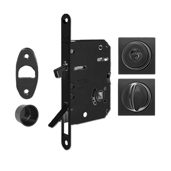 Итальянская ТМ AGB сегодня является европейским лидером по производству дверной фурнитуры. Обусловливает это прежде всего технологическое превосходство и постоянные инновации, которые являются основой качества продукции. AGB Scivola Tre Class - это комплект фурнитуры, который специально предназначен для врезки в двери, которые смонтированы в раздвижную систему. Включает в себя механизм замка. Главной особенностью этого замка есть специальный механизм на корпусе, с помощью которого можно извлечь двери, когда они в открытом состоянии в стене. По сути он заменяет ручку под палец, которая обычно выполняет эту роль, поэтому отпадает необходимость сверлить отверстие под нее. Для открывания и фиксации полотна в закрытом положении служат ручки с воротком. У них не выступающая за край двери конструкция. Благодаря этому не мешают их полном закрыванию. Для экстренных случаев вороток имеет паз для открывания с внешней стороны. С дизайнерской точки зрения данные ручки выделяются своей небольшой квадратной формой и минимализмом, поэтому не будут привлекать лишнего внимания. С помощью этого комплекта можно закрывать как два полотна между собой так и фиксировать одно полотно вплотную к стене. В черном цвете "латунь" в помещении с современным high-tech интерьером отлично подойдут на двери темных оттенков. Материал изготовления - сталь. Благодаря этому и инновационной технологии гальванической обработки ручки будут сохранять свой внешний вид в течении долгого времени.