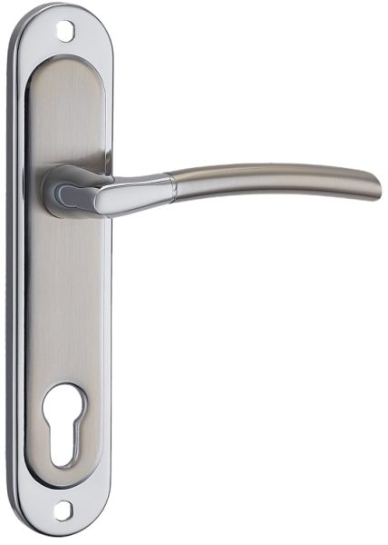 Ручки на планке торговой марки MVM. Дверная фурнитура этой торговой марки представляет собой универсальность дизайна и надежность в использовании. Эти модели ручек не является исключением. Изготавливаются из алюминиевого сплава, благодаря чему они легкие и приятные на ощупь. Покрытия методом гальваники наносится в три слоя, что значительно повышает защиту цветового оттенка от стирания и царапин, в отличие от однослойного покрытия. Современный цвет - матовый никель / полированный хром - удачный выбор для помещения в спокойных светлых тонах. Чтобы удачно подобрать ручку на планке нужно знать такую характеристику как межосевое расстояние. Это расстояние должно соответствовать Вашему механизму замка. Данные ручки подходят для замков с межосевым расстоянием в 85 мм. Крепление ручки происходит с помощью шурупов или стяжных винтов. Дизайн в стиле модерн прекрасно дополнит дверное полотно с плавными линиями.