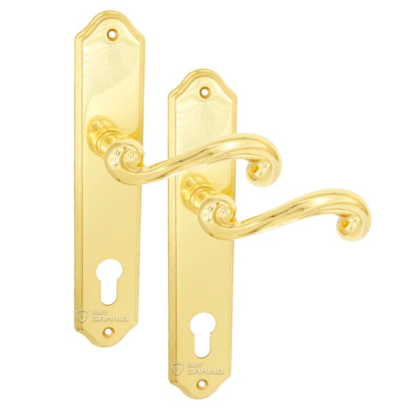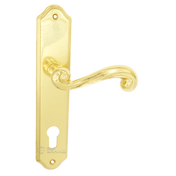 Польские ручки на планке - представляют собой практическую и надежную дверную фурнитуру за приемлемую цену. Изготавливаются из латуни, это прочный и приятный на ощупь материал. Ручки из такого материала устойчивы к коррозии и имеют длительный срок службы. Данная модель имеет тип планки под сердцевину и устанавливается на входные деревянные двери. Яркий цвет - золото - хорошо подойдет для дома или квартиры в светло-золотых тонах. Покрытия методом гальваники обеспечит надежную защиту цветового оттенка от царапин и стирания. При выборе стоит учесть такой критерий как межосевое расстояние, оно может быть разное и зависит от механизма замка. Например, эти ручки подходят для замков с межосевым расстоянием 85 мм. Процесс крепления планки к дверному полотну осуществляется за счет шурупов. Во время этого процесса важно прочно зафиксировать ручки специальным винтом гужоном, это увеличит срок эксплуатации и позволит избежать проблем с провисанием ручек.