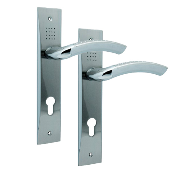 Ручки на планке KEDR с оригинальным дизайном в цвете "сатин/хром" устанавливаются на металлические или деревянные входные двери, которые закрываются сердцевиной. Межосевое расстояние составляет 85 мм. Это основной критерий в процессе выбора такого типа дверных ручек. Конструктивно они выполнены из алюминиевого сплава. Поэтому устойчивы к износу и деформации поверхности. Покрытые гальваническим покрытием, которое защищает от мелких механических повреждений. Планка ручки крепится к дверному полотну шурупами или стяжными винтами. Нажимную часть нужно крепко зафиксировать специальным винтом - гужоном. Это важно, ведь квалифицированный монтаж способствует долгому сроку эксплуатации ручек.
