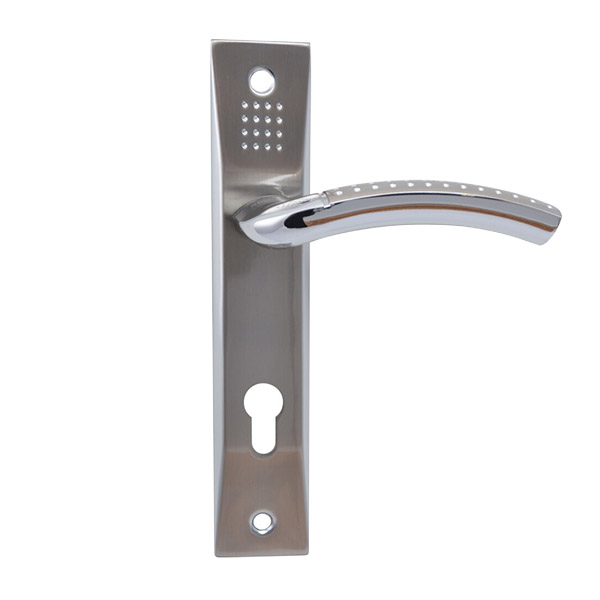 Практичные ручки на планке турецкой торговой марки SIBA Bari устанавливаются на входные или межкомнатные деревянные или металлические двери. Изготавливаются из специального сплава анодированного алюминия. Это материал с особым покрытием, главное предназначение которого предотвратить процесс окисления металла на воздухе и защитить его от механических повреждений. Ручки расположены на планке больших размеров, которая отлично дополнит массивное дверное полотно. Устойчивость цветового оттенка к истиранию обеспечивают три слоя лака и гальваническое покрытие, прошедшее тест на стойкость к коррозии в соляном тумане. Приятное цветовое сочетание – матовый никель/хром – прекрасно будет смотреться в комнате или доме с нежными светлыми или серыми оттенками. Важно обратить внимание на такой критерий как межосевое расстояние. Например, данная модель подходит только для замков с межосевым расстоянием 85 мм. Крепление производится за счет шурупов или стяжных винтов. Надежный монтаж повысит срок эксплуатации ручек и позволит избежать проблем с их провисанием или расшатыванием.