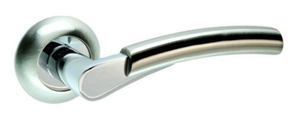 Ручки на розетте торговой марки KEDR. Это практический товар по доступной цене. Материал изготовления - алюминиевый сплав. Эргономичная и приятная на ощупь нажимная часть будет приносить удовольствие от использования. Покрытия методом гальваники, гарантирует сохранность внешнего вида ручки в течение 36 месяцев. Цвет этой модели сатин/хром прекрасно подчеркнет интерьер со светлыми оттенками. Монтируются такие ручки без особого труда. На дверном полотне имеют аккуратный вид, поскольку отверстия для крепления прикрыты внешней крышкой розетки.
