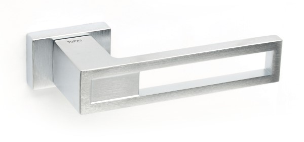 Ручки на розетте португальского производства TUPAI. Дверная фурнитура сделана с учетом экологических европейских стандартов. Материал изготовления - цинк-алюминиевый сплав. Нажимная часть имеет двойную металлическую пружину, благодаря чему ручка не будет провисать. Современный цвет - хром матовый - удачный выбор для помещения в спокойных серых тонах. Покрытие наносится специальным методом гальваники в несколько слоев. Благодаря этому ручки будут выглядеть как новые до 24 месяцев. Дополнительно это обеспечивает устойчивость цвета к повреждению и царапинам. Прямоугольная форма розетты в стиле хай-тек прекрасно подойдет для интерьера с современными прямыми деталями.