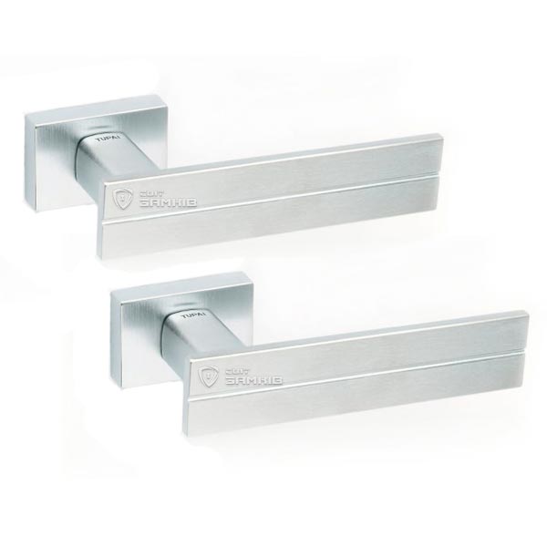 Ручки на розетте португальского производства TUPAI. Дверная фурнитура сделана с учетом экологических европейских стандартов. Материал изготовления - цинк-алюминиевый сплав. Современный цвет - хром матовый - удачный выбор для помещения в спокойных серых тонах. Покрытие наносится специальным методом гальваники в несколько слоев. Благодаря этому ручки будут выглядеть как новые до 24 месяцев. Нажимная часть имеет двойную металлическую пружину, благодаря чему ручка не будет провисать. Прямоугольная форма розетты в стиле хай-тек прекрасно подойдет для интерьера с современными прямыми деталями.
