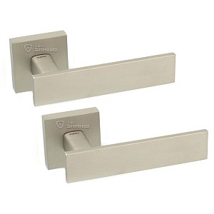 Ручки на розетте португальского производства TUPAI. Дверная фурнитура сделана с учетом экологических европейских стандартов. Изготавливается из латуни по современным технологиям на фабрике в Португалии. Популярный цвет - никель матовый - замечательно будет смотреться в комнате или офисном помещении в нежных светлых тонах. Покрытие наносится специальным методом гальваники в несколько слоев. Благодаря этому ручки будут выглядеть как новые до 24 месяцев. Дополнительно это обеспечивает устойчивость цвета к повреждению и царапинам. Также нажимная часть имеет двойную металлическую пружину, благодаря чему ручка не будет провисать. Современный дизайн в стиле хай-тек прекрасно дополнит дверное полотно с прямыми линиями.
