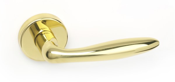 Ручки на розетте португальского производства TUPAI. Дверная фурнитура сделана с учетом экологических европейских стандартов. Изготавливается из латуни по современным технологиям на фабрике в Португалии. Золото полированное - это яркий цвет, который прекрасно дополнит интерьер с золотыми элементами и наполнит помещение светлыми оттенками. Покрытие наносится специальным методом гальваники в несколько слоев. Благодаря этому ручки будут выглядеть как новые до 24 месяцев. Дополнительно это обеспечивает устойчивость цвета к повреждению и царапинам. Также нажимная часть имеет двойную металлическую пружину, благодаря чему ручка не будет провисать. Дизайн в стиле модерн с круглой розеттой подчеркнет Ваш интерьер с изысканными плавными линиями.