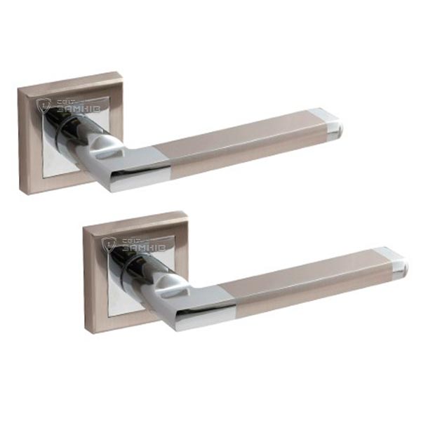 Ручки APECS - это отличный выбор для тех, у кого соотношение “цена/оригинальный дизайн” на первом месте. Данная модель с квадратной розеттой в сочетании цветов "никель матовый/хром" идеально будет смотреться на дверях как с темными, так и со светлыми (тепло-серыми, бежевыми) оттенками. Толщина полотна 35-60 мм. Материал изготовления - алюминий. Ручки покрыты гальваническим покрытием. Это сохранит их от царапин и мелких механических повреждений до 36 месяцев при ежедневном использовании. В случае если дверь нужно закрыть изнутри или есть сердцевина, то дополнительно можно выбрать вороток или накладки в соответствующем цвете. Монтаж не требует дополнительных усилий.