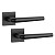 APRILE AT Funkia Q 7S – это ручки на квадратной розетте. Изготавливаются из цинкового сплава ZAMAK. Благодаря этому достаточно прочны. Строгий современный хай-тек дизайн с прямыми линиями в трендовом черном цвете отлично завершит продуманный стиль вашей двери в подобных темных оттенках.
