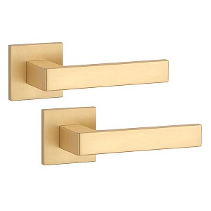 APRILE AT Sulla Q 7S – это ручки на квадратной розетте. Изготавливаются из цинкового сплава ZAMAK. Благодаря этому достаточно прочны. Строгий современный хай-тек дизайн с прямыми линиями в трендовом цвете "латунь матовая" отлично завершит продуманный стиль вашей двери в подобных золотых оттенках.