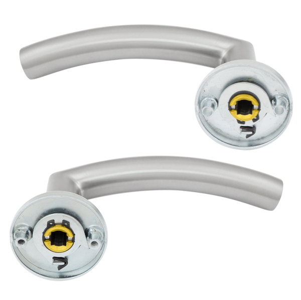 Чешские ручки с круглой розеттой торговой марки ROSTEX выбирают прежде всего для дверей в помещениях частного и общественного назначения. Их дизайн в цвете матовой нержавеющей стали как нельзя лучше подходит для этого. Ручки удобны в использовании благодаря своей эргономичной форме и матовой поверхности. Конструктивно выполнены из нержавеющей стали, что дает возможность их использования при различных погодных условиях. Это дает возможность устанавливать их не только на межкомнатные или входные двери в квартиру, но и на уличные. В таком случае рекомендуется, дополнительно комплектовать круглым протектором MUL-T-LOCK® SL3 в цвете "матовый никель" или DISEC® в аналогичном ручкам оттенке. Стержень и стяжки рассчитаны на толщину дверного полотна от 38 до 55 мм. При необходимости установки фурнитуры на толстые двери нужно дополнительно приобрести соответствующий удлинительный набор. Качественная поворотная пружина делает ручки долговечными, в результате чего они рассчитаны на долгий срок эксплуатации.