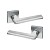 Особой характеристикой этих ручек является визуальная строгая форма нажимной части и квадратной розетты. Они гармонично будут смотреться на полотнах похожего дизайна. Идеально сочетаются со стилем хай-тек. Покрытие в современном цвете "хром матовый" идеально дополнит двери аналогичных цветовых оттенков.