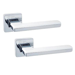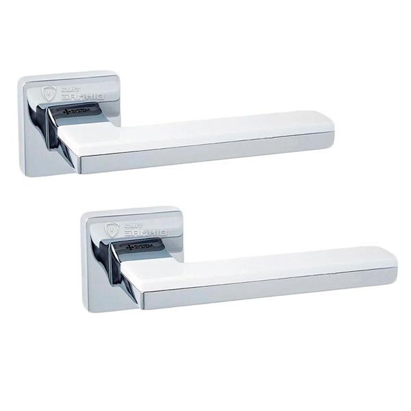 Ручки на розетте турецкого производства SYSTEM. Изготавливаются из прочного цинкового сплава. Эти ручки цельнолитые и массивные, благодаря чему они не сломаются. Надежный металлический пружинный механизм обеспечивает удобство нажатия и отсутствие проблем с провисанием ручки. Удачное сочетание - хром / хром / белые вставки - прекрасно дополнит квартиру или дом в светлых тонах и белыми элементами. В результате многослойного гальванического покрытия, внешний вид ручки будет сохранён до 60 месяцев. Такие ручки универсальные - устанавливаются как на праве так и на левые двери. Дизайн разработан в современном стиле хай-тек, идеальный выбор для дверного полотна с прямыми линиями, вставками прямоугольного стекла.
