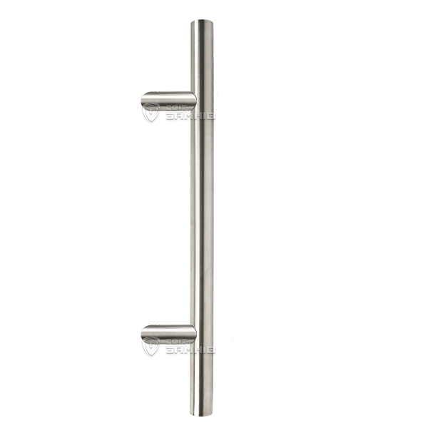 Данную ручку скобу целесообразно ставить на входную дверь помещений с большой проходимостью людей – торговых центрах, ресторанах, магазинах, гостиницах и т.д. Она подходит для полотен из металлопластика, алюминия и стекла. В использовании ручка удобна: чтобы открыть дверь достаточно потянуть за саму скобу. Длина ручки составляет 1000 мм, расстояние между креплениями – 800 мм. Диаметр профиля трубы – 30 мм. Это главные технические аспекты при выборе.