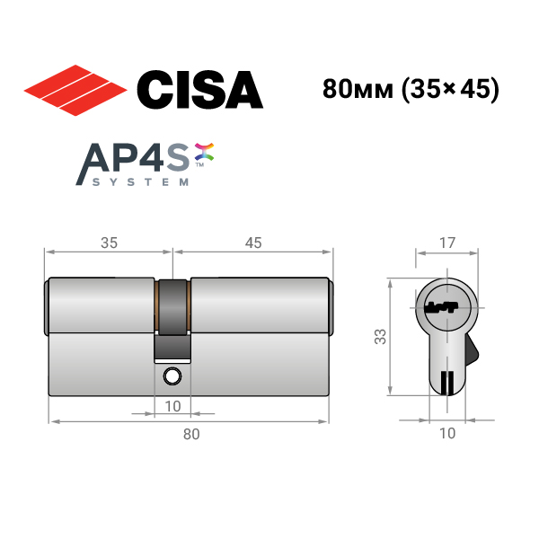 - Цилиндр CISA AP4 S 80 (35*45) никель матовый ⭐