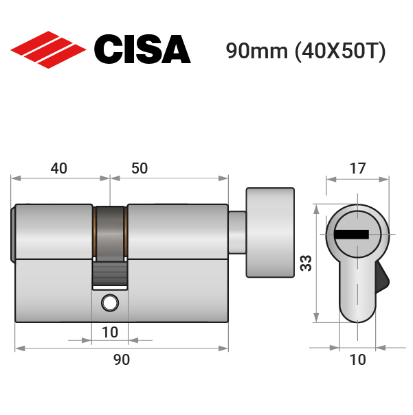 - Цилиндр CISA ASIX P8 90T (40*50T) никель матовый ⭐