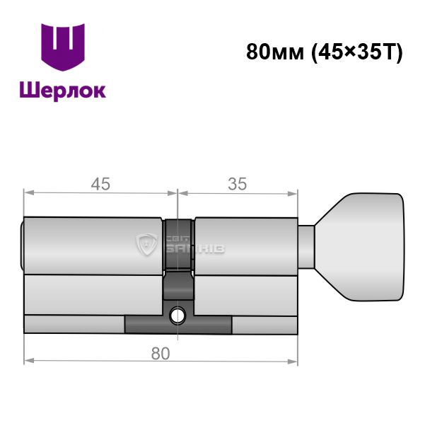 Цилиндр SHERLOCK HK 80T (45*35T) никель сатин