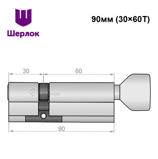 Описание Цилиндр SHERLOCK HK 90T (30*60T) никель сатин
