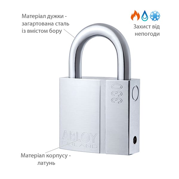 Замок ABLOY PL330 Protec 2 представляет собой навесной замок, который изготавливают в Финляндии. Благодаря устойчивости к непогоде, используют для закрывания шкафчиков, ящиков, эл.подстанций, ворот, которые располагаются на улице. Корпус замка выполнен из латуни, а дужка - из нержавеющей стали. В замке используется цилиндр ABLOY Protec 2, который имеет защиту от взлома методом бампинга, открытия отмычками и от несанкционированного дублирования ключа. Сам же дисковый ключ можно вынуть из него только после закрывания.