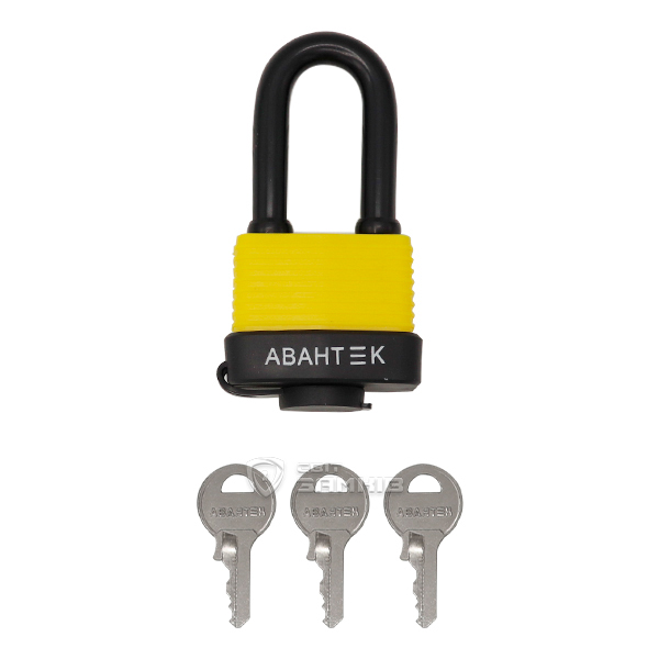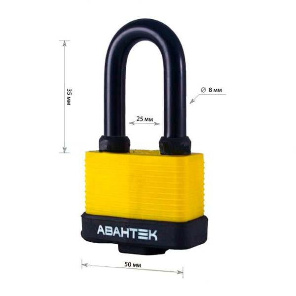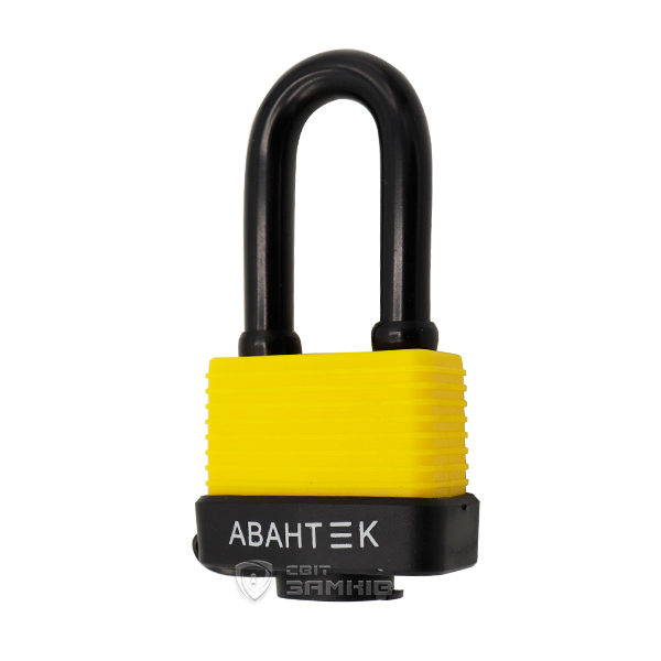 Серия украинских навесных замков АВАНТЕК FL LONG. Этот замок изготовлен из стали. Дополнительно он находится в резиновом чехле, который полностью защищает его от коррозии, влаги, перепада температур и различных погодных условий. Дужка замка изготовлена ​​из закаленной стали. Для повышения надежности дужка дополнительно фиксируется с двух сторон. Вокруг скобки находятся резиновые кольца, которые не дают пыли, грязи и жидкости попасть внутрь замка. Нажатием на дужку замка его можно закрыть без использования ключа. Этот замок с уверенностью можно использовать на улице. Удлиненная дужка позволяет использовать такой замок на широких или неровно расставленных навесах, или в местах, где недостаточно будет высоты скобки модели FL 1565.