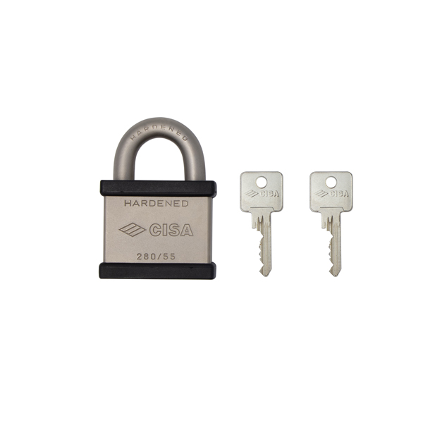 CISA 28050 – это дугообразный навесной замок, который выбирают прежде всего для наружного применения. Обусловлено это тем, что корпус замка изготовлен из углеродистой стали с антикоррозийным никелевым покрытием. Прочная стальная дужка также защищена химическим никелированием. Это создает высокую надежность и устойчивость к атмосферным воздействиям.