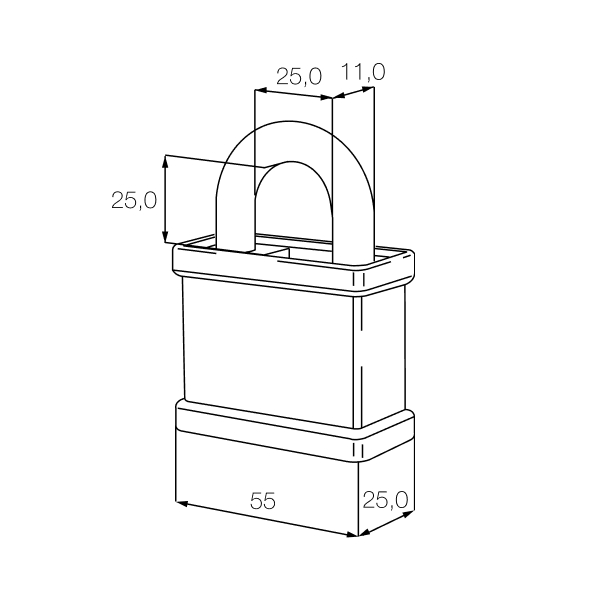 •     Ширина отверстия дужки – 25 мм.