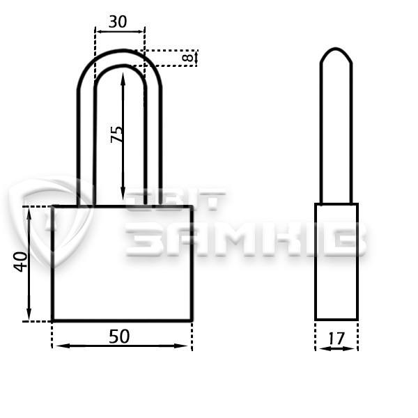 • Диаметр дужки - 8 мм.