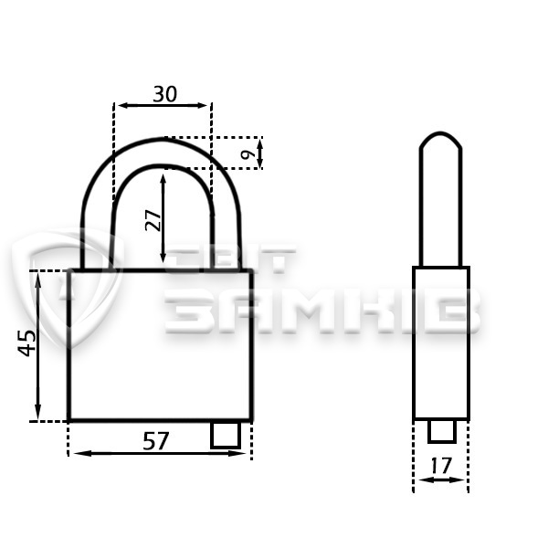 • Высота дужки - 27 мм.