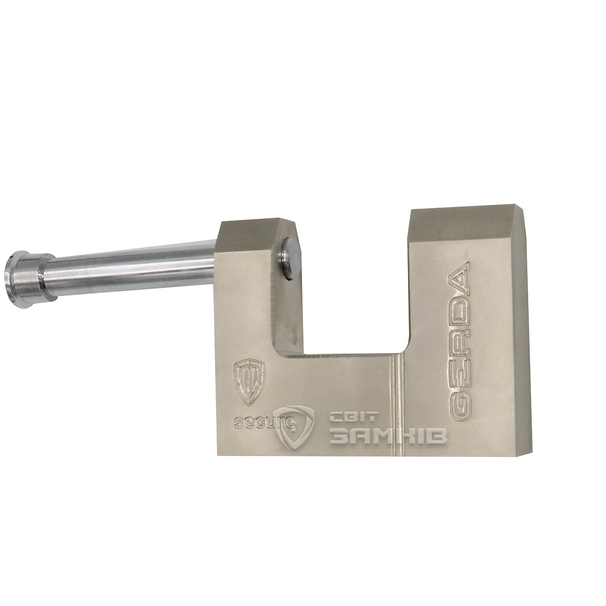 Польский навесной замок серии GERDA KSWT. Предназначен для использования на воротах, калитках, гаражах, складах и различных подсобных помещениях. Особенностью этой серии является П-образная форма корпуса. В таком замке дужка более скрытая чем в классическом варианте, что повышает ее защиту от любых попыток повлиять на нее. Корпус изготовлен из латунного сплава. В свою очередь, дужка изготовлена из закаленной стали, что обеспечивает ее устойчивость к силовой нагрузке. Замок управляется сердцевиной с финским ключом. Такая сердцевина имеет устойчивость к пыли и грязи.