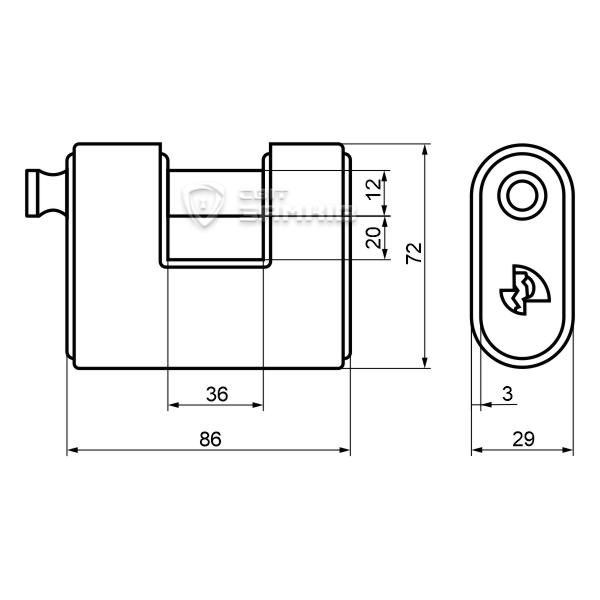 • Высота проема дужки - 20 мм.