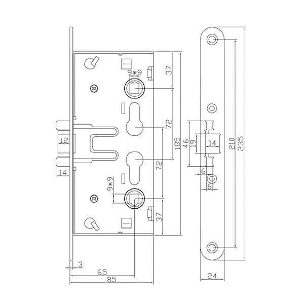 Описание Механизм замка SANTOS 1739 (BS65*72мм) противопожарный нержавеющая сталь