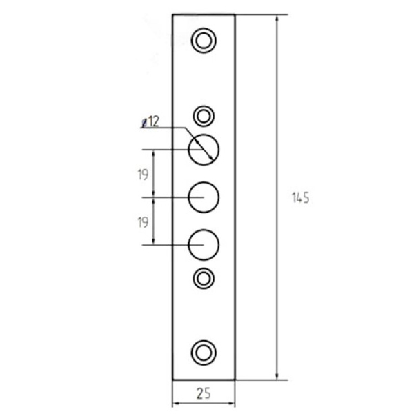 Совместима с врезным замком CLASS 0406. С отверстием под металлические ригели диаметром 12 мм.