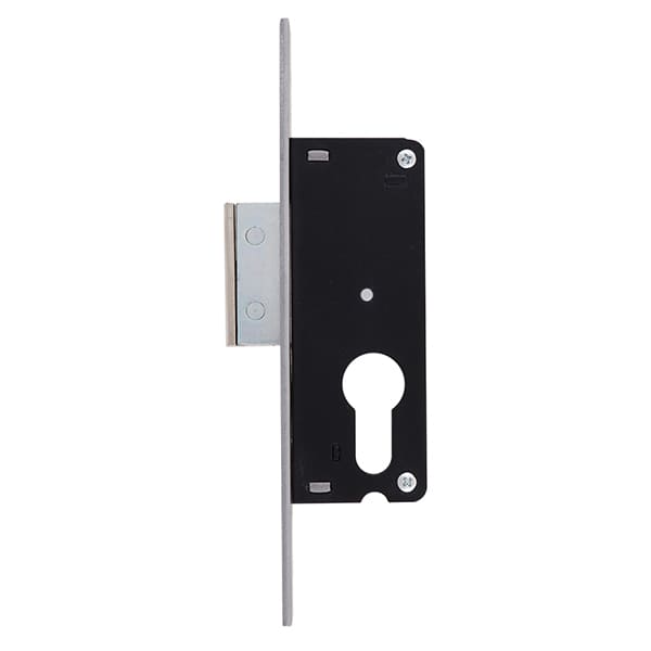 Замок SANTOS 721 - это верхний дополнительный замок, который устанавливается на металлические, алюминиевые и деревянные входные двери. Из-за простоты механизма замок можно врезать как в левую так и в правую дверь. Управляется сердцевиной стандарта EURO DIN. Она в комплект не входит и докупается отдельно в зависимости от ваших потребностей. Имеет один прямоугольный ригель, полный выход которого составляет 16 мм.
