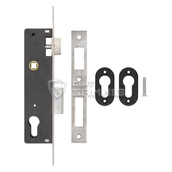 Замок SANTOS 726 устанавливается врезным методом на входные двери из металла, дерева и алюминия в качестве основного. При необходимости его часто используют и на калитках. Управляется ручками и сердцевиной стандарта EURO DIN. Она в комплект не входит и докупается отдельно в зависимости от ваших потребностей. Замок оснащен одним прямоугольным стальным ригелем. Его полный выход составляет 16 мм. Торцевая планка изготовлена из нержавеющей стали. Благодаря реверсивному язычку замок подходит как для лево, так и правосторонних дверей.