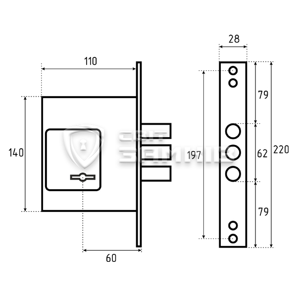 • Бронепластина из закаленной стали, что способствует защите корпуса замка и опорной стойки от высверливания.