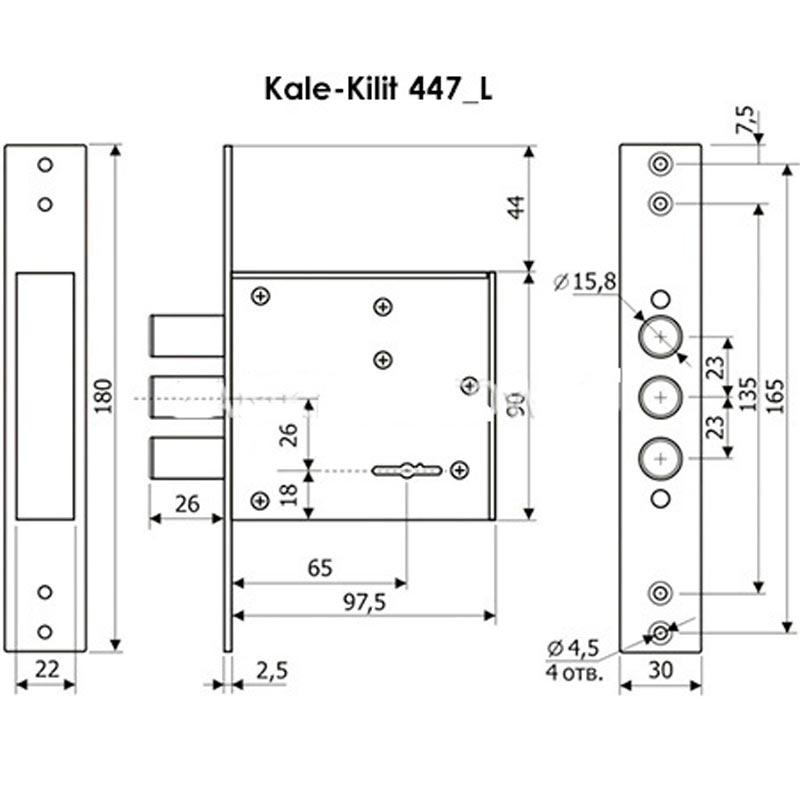Описание Механизм замка KALE 447L (BS67,5мм) хром