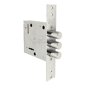 Дверная фурнитура турецкой ТМ KALE является одной из лучших по соотношению цена/качество. Данная модель - это 3-х ригельный врезной замок, который устанавливается на металлические входные двери. Не имеет язычка, поэтому используется в качестве дополнительного верхнего замка. Полный выход ригелей диаметром 15,8 мм составляет 26 мм. Управляется ручками и сувальдными ключом.