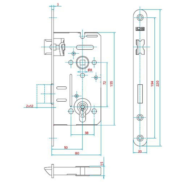 Механизм замка MOTTURA 52.771DM2856 (BS66*85мм) ключ 60мм