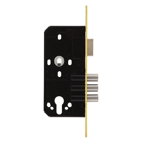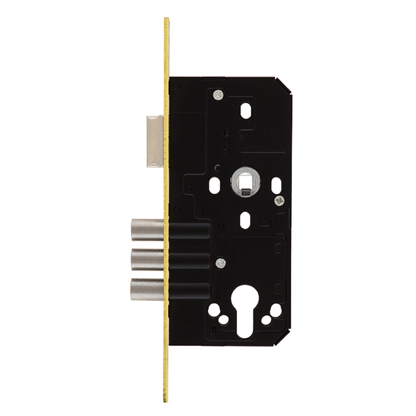Замок SANTOS 972 - это 3-х ригельный основной врезной замок, который устанавливается на входную дверь из металла и дерева. Полный выход ригелей диаметром 14 мм составляет 21 мм. Управляется ручками и сердцевиной стандарта EURO DIN. Она в комплект не входит и докупается отдельно в зависимости от ваших потребностей. Торцевая планка изготовлена из латуни. Благодаря реверсивному язычку подходит как для лево, так и правосторонних дверей. Механизм замка имеет защиту в виде закаленной пластины.