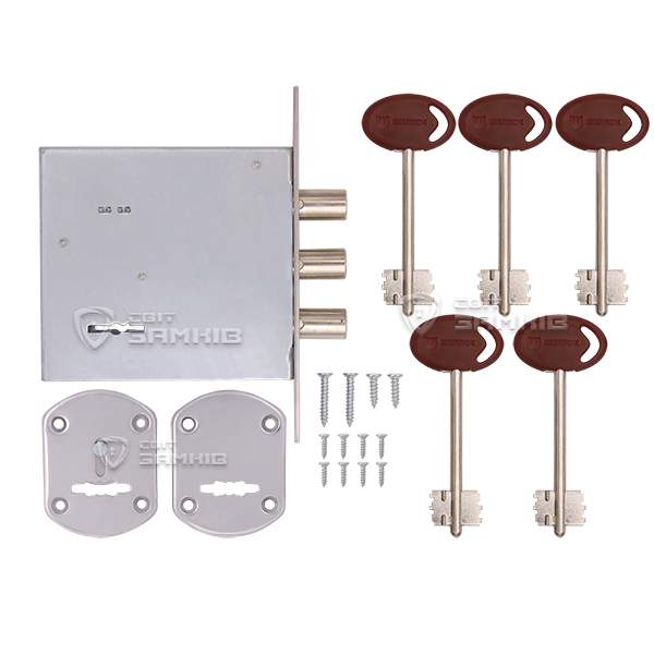 Закрывание осуществляется тремя ригелями из стали диаметром 13,8 мм. Они надежно фиксируют дверь, обеспечивая достаточный уровень безопасности. Полный выход составляет 21 мм. Данный замок идеально подходит для установки в качестве дополнительного замка в металлическую или деревянную дверь квартир, домов, гаражей или коммерческих помещений. У данной версии в комплектации 5 ключей.