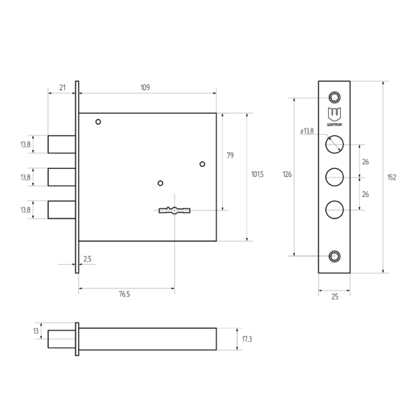 • Размеры замка – 109х101,5х17,3 мм.