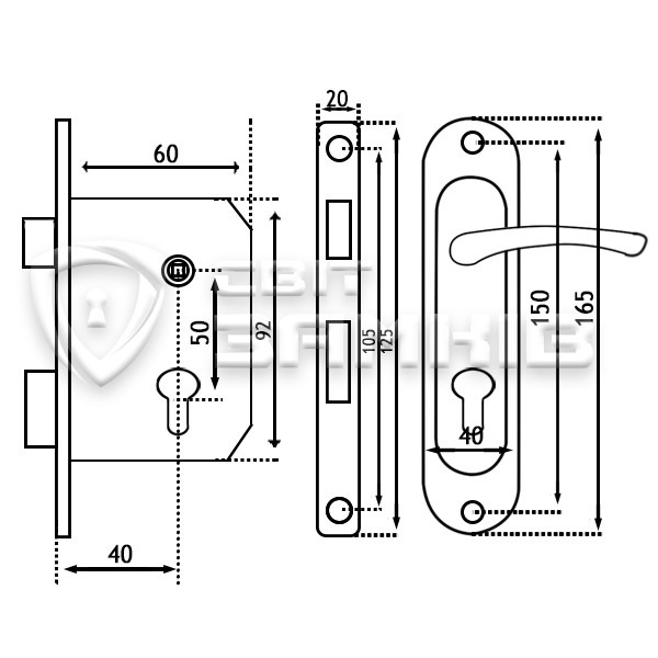 Замок накладной ПЕНЗА ЗНЗА 1 (BS60мм) 3 ключа (н)