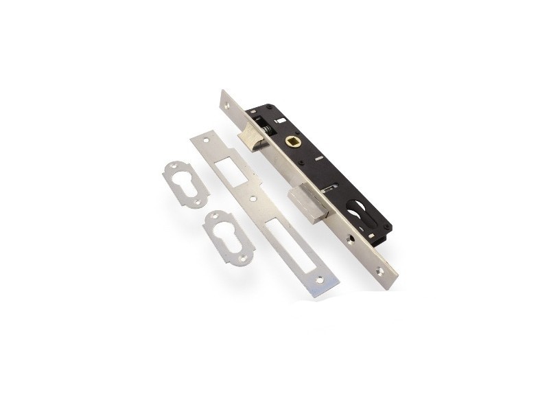 Узкопрофильные замки удобны для установки в трубу разного размера в зависимости от бексету замка, также важную роль при подборе и установке играет размер лицевой планки, в данной модели она составляет 22 мм. Замок с такими параметрами подходит для алюминиевых и металлических дверей. Важное замечание, на металлопластиковые двери такой замок установить возможности не будет, потому что размер лицевой планки будет великоват.