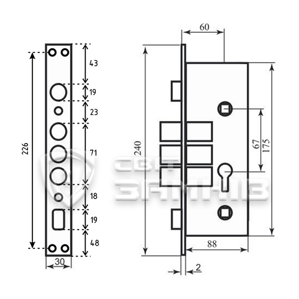 Механизм замка SHERLOCK 30.11 (BS67,5*77мм) 5 ключей