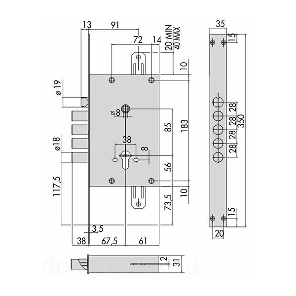 Механизм замка MOTTURA 52.771DM2856 (BS66*85мм) ключ 60мм