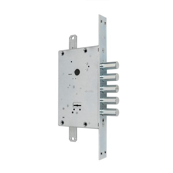 Врезной механизм итальянского производства CISA 57675 ALPS – это 5-ти ригельный замок с сувальдным типом закрывания и возможностью к перекодировке. Его устанавливают на металлические входные двери в качестве верхнего дополнительного или в качестве основного для гаражных ворот. Особенностью этой модели является система защиты блока сувальд ALPS. Ее принцип работы основан на различиях в работе оригинального ключа и отмычек. Замок блокируется почти мгновенно и бесшумно при попытке применения отмычек и характерного влияния на кодовый механизм замка. Есть защита от взлома методом "свертыша". Ригели выдерживают фронтальное давление в 1000 кг и боковое – 600 кг. Закаленная стойка и пакет из пластин помешают сверлению стойки хвостовика. CISA 57675 можно установить как в левую, так и правую дверь благодаря тому, что язычок можно перевернуть без разборки замка. Для дополнительной защиты от высверливания мастера рекомендуют устанавливать защитную пластину CISA Anti-Drill Big.