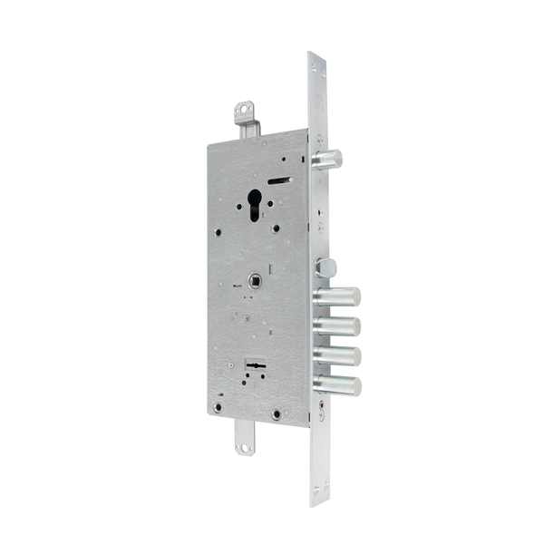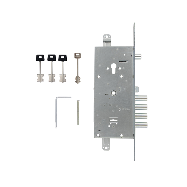 Корпус замка CISA 57986 ALPS объединяет две системы замыкания – сувальдный ключ и цилиндр. Пользуется популярностью для установки на входной металлической двери весом до 200 кг. Нижние четыре ригеля управляются сувальдным ключом. Верхний ригель – цилиндром, который в комплект не входит. Оба механизма работают независимо друг от друга.