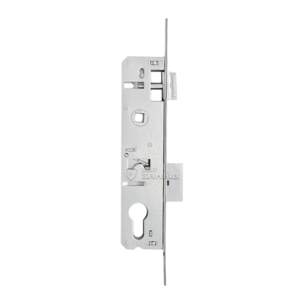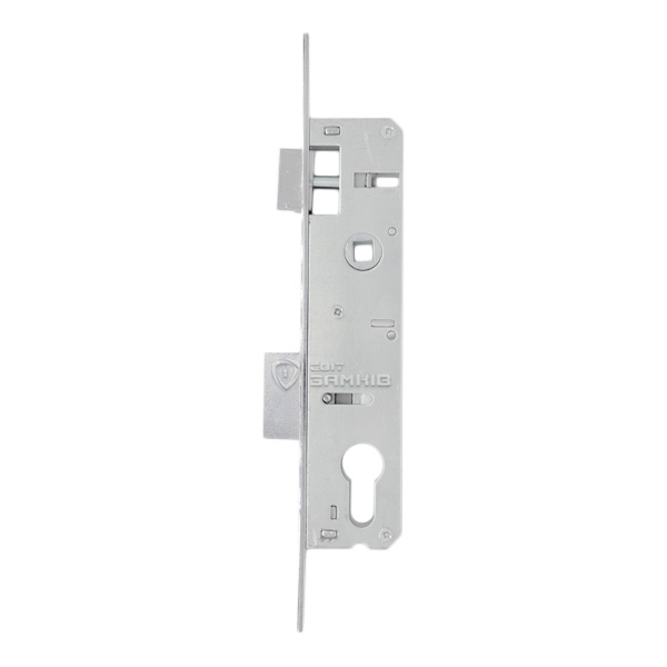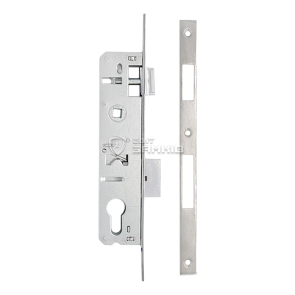 Узкий по корпусу замок врезается в полотно дверей и незаметный снаружи. Часто данный замок устанавливают в уличные калитки. Узкая торцевая планка (16 мм) позволяет устанавливать данный корпус на металлопластиковых дверей.  Замок закрывается сердцевиной, которую нужно подбирать отдельно. Оборот ключа на 180” выталкивает ригель, который надежно запирает дверное полотно.