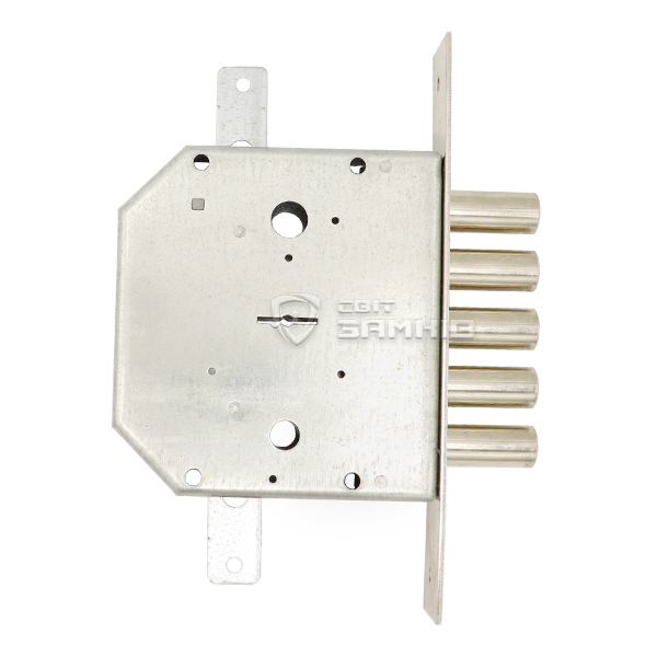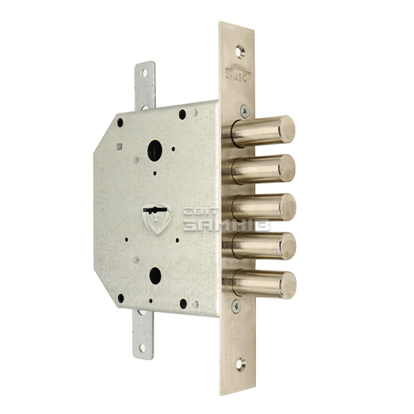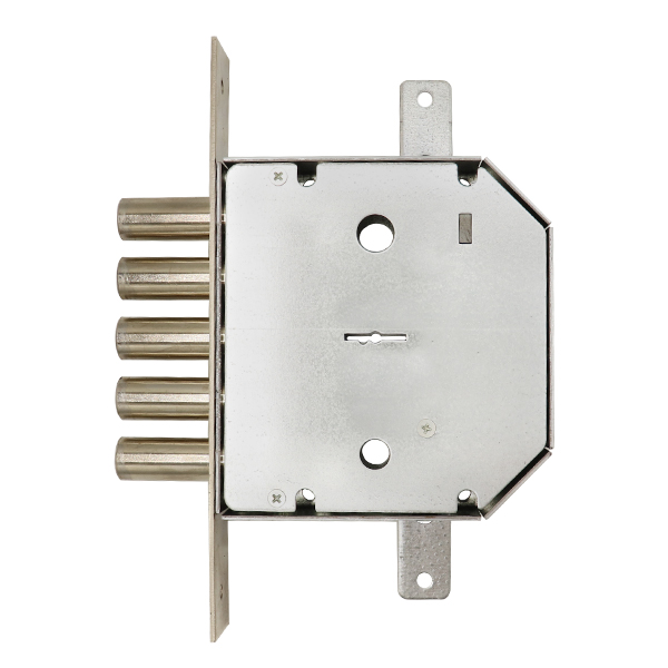 Замки данного типа отличаются своей долговечностью и износостойкостью. Материалы и конструкция соответствуют международным стандартам качества. Подходит для тяжелых бронированных и гаражных дверей. Механизм оснащен пятью ригелями для более надежного запирания дверей.