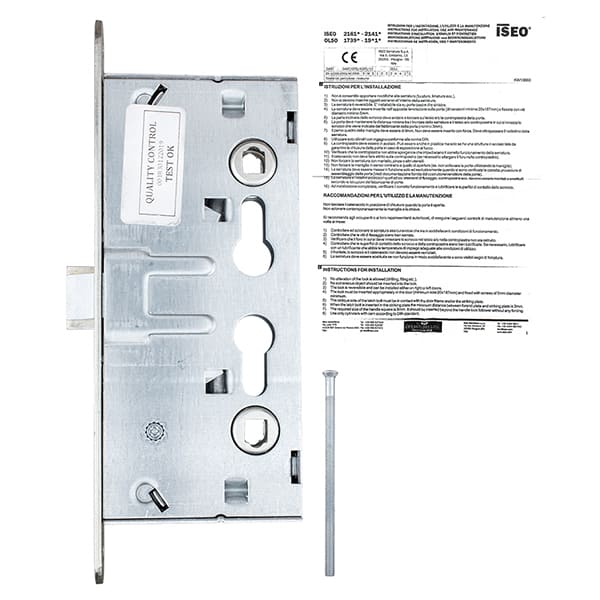 ISEO 216120654 – это врезной замок, предназначенный для использования в противопожарных дверях. Производится в Италии. Устанавливается во входные металлические дверные полотна. Имеет запирающие ригели и язычок. В открывшемся состоянии замок отпирается нажатием на ручку с любой стороны двери. В закрытом состоянии по обе стороны ручка имеет свободный ход (нажимается, но замок не отпирается). Ключом замок открывается с любой стороны двери всегда. Сердцевина EURO DIN в комплект НЕ входит и выбирается в зависимости от Ваших потребностей.