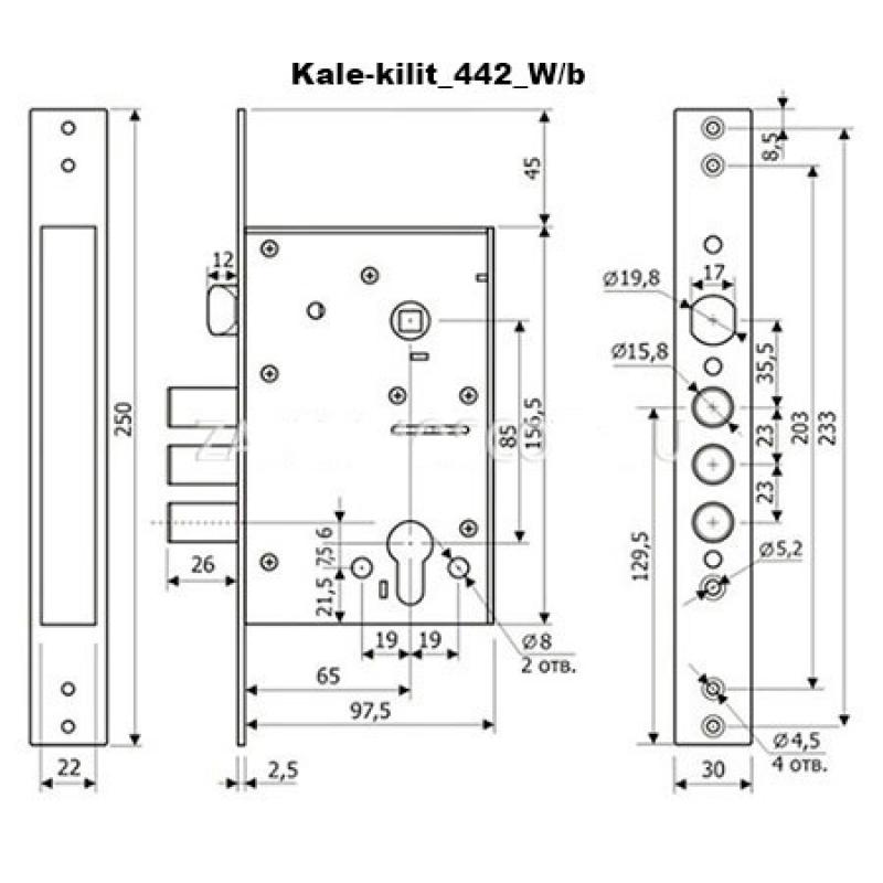 Описание Механизм замка KALE 442 (BS67,5*85мм) хром